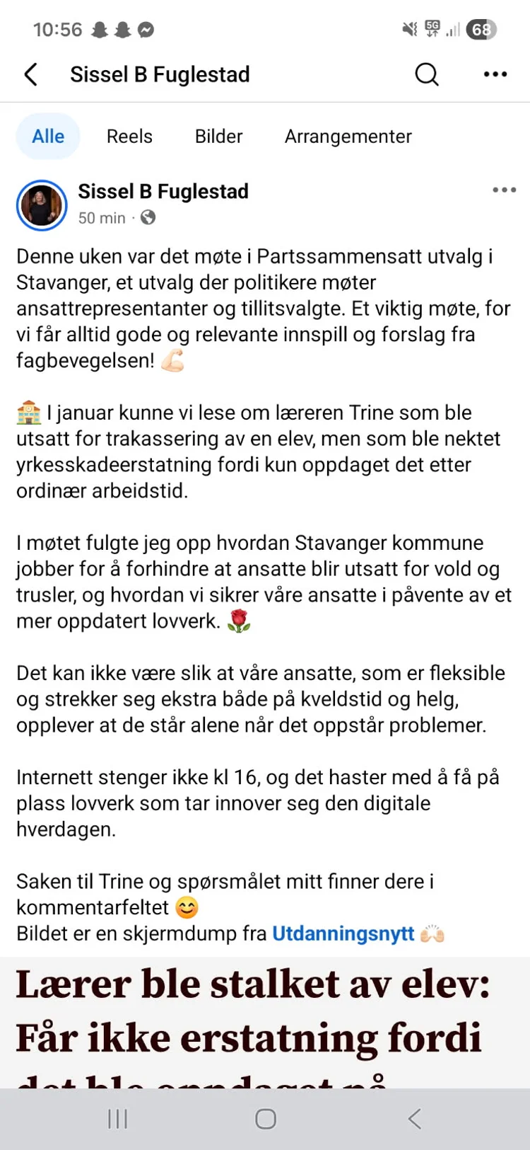 Det en stund siden siste oppdatering, men nå er endelig noe å melde: Nestleder i Stavanger Arbeiderparti la fram problemstillingen som saken min representerer i partssammensatt utvalg 17. mars. Svarene hun fikk fra ordfører og kommunedirektør var et stykke unna tilfredsstillende (av typen: Eleven har ikke lov til å gjøre slikt), og jeg er i kontakt med Fuglestad om oppfølging av problemstillingen.