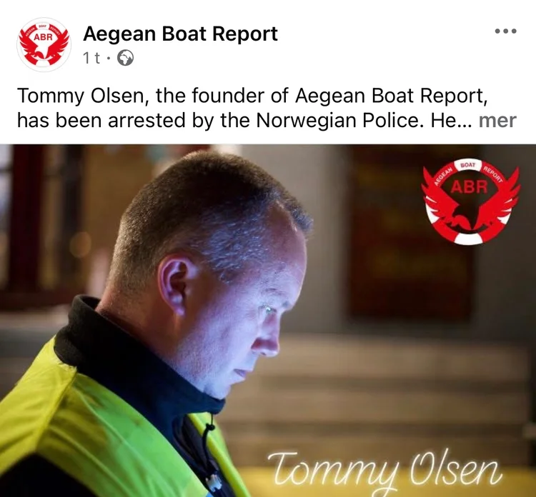 Støtte til Aegean Boat Report og Tommy Olsen! I solidaritet med menneskeverdet🕊️