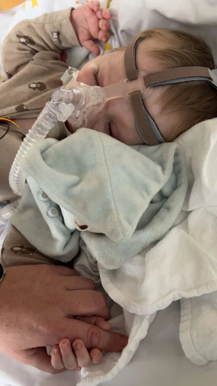 Samtidig ble Mikkel svært syk og innlagt på St. Olavs i Trondheim, der han tilbrakte tre krevende måneder, mest på Barn Intensiv. Svak, avmagret og avhengig av pustestøtte døgnet rundt til å begynne med. Legene og sykepleierne jobbet intensivt for å finne riktig pustestøtte som både hjalp ham og gradvis styrket ham.