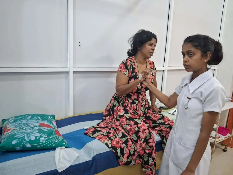 Shanika og Rumesh bor i Sri Lanka og venter sitt andre barn. Shanika ergravid i 4. måmned og sliter med alvorlig svangerskapskvalme (hyperemesis) og trenger oppfølging på sykehuset, men helsehjelp er ikke gratis der. Rumesh må være hjemme og ta vare på kone og barn.
