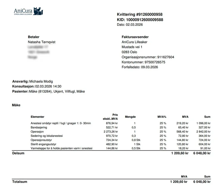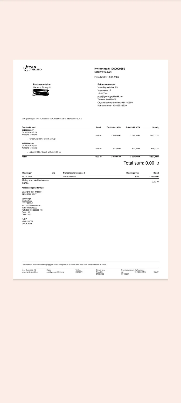 Men så skjedde det et mirakel. En veterinær ved AniCura Dyreklinikk Lilleaker sa ja til å hjelpe meg.