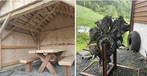 Grindebygg for utstilling av flymotorar