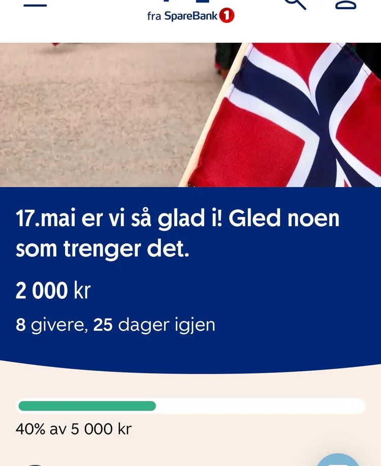 Jeg har satt 5000,- som ønsket beløp. Setter opp bonusmål hvis vi klarer å nå målet. Familiene vil få pengene i god tid til 17.mai. ♥️🇳🇴